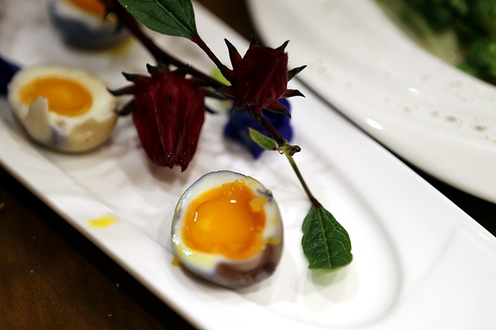 使用糖心蛋、蒸蛋跟黑米粉一起調製出來的小品,蛋黃的香味非常濃郁,一口塞進嘴裡的滋味真的很無敵。 |