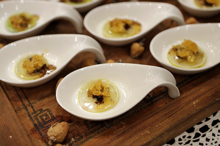 | 甜點的部分也很特別,使用在地番婆蜂蜜品牌的發酵蜂蜜搭配新鮮檸檬片,番婆蜂蜜真的非常特別,層次非常非常的多以外,那散發出來的蜂蜜甜味我也超愛的,直接跟檸檬一起入口那酸甜滋味發揮到了極限,超美味的解膩又爽口。 |