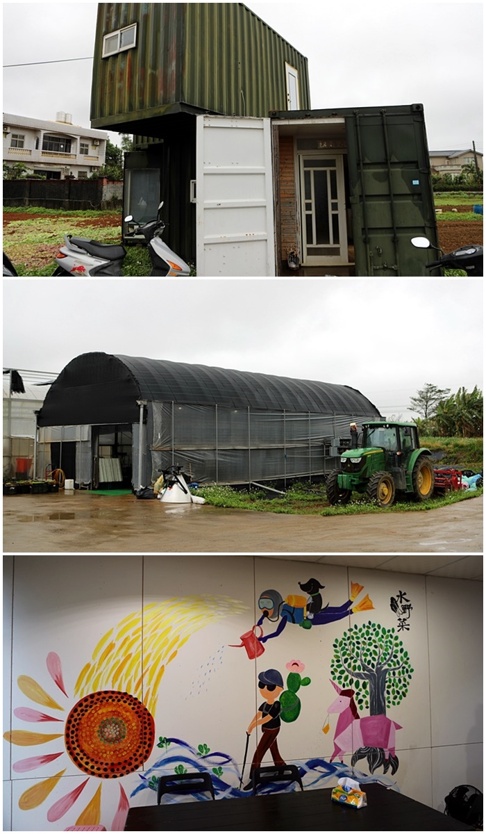 | 吃飽飯後休息一會民宿主人就帶著我們來到水野菜農場,水野菜農場非常的知名,原來他就設在大園休閒農業區裡面,這邊也有農業體驗的相關活動,辦公室是用貨櫃屋拚出來的空間還滿有特色的。 |