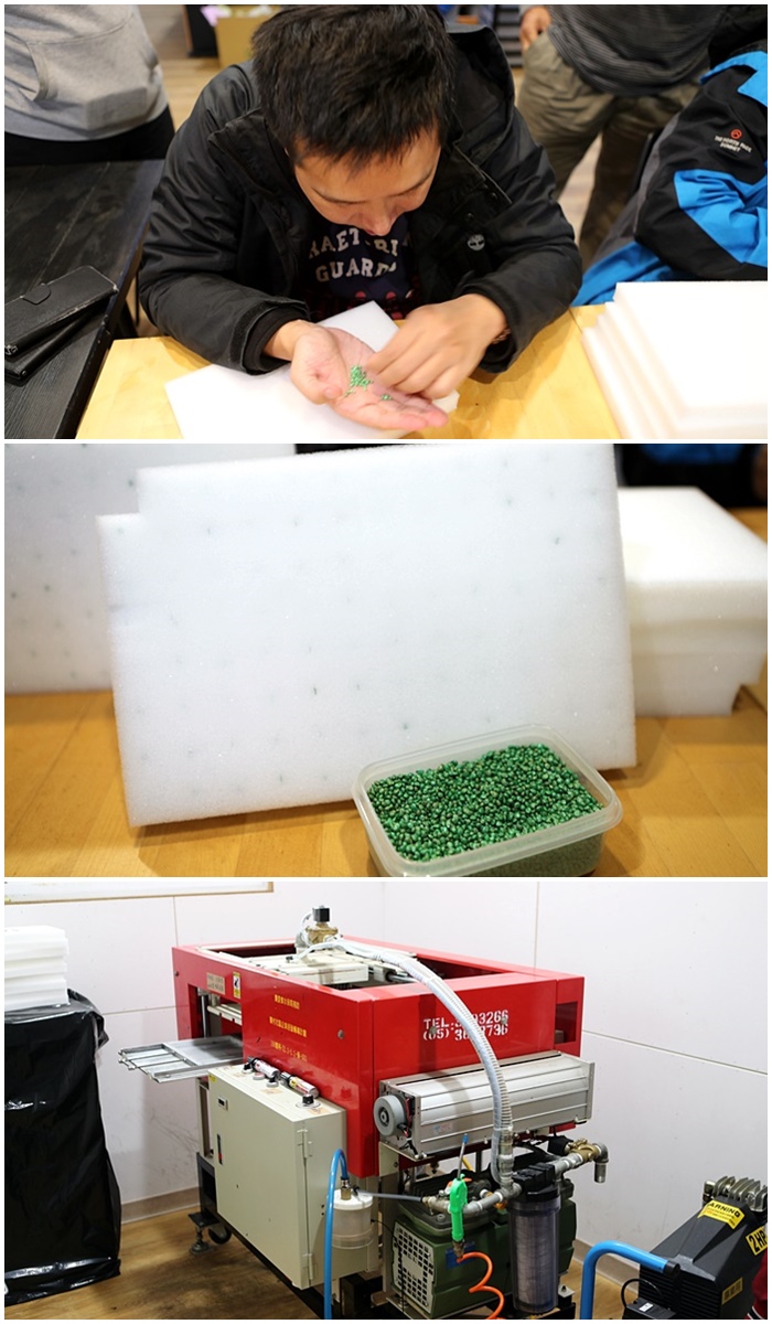 | 水野菜農場主要的蔬菜都是全部使用水耕系統,所以每顆種子都需要放入棉塊中,要把一顆顆那麼細小的種子放入棉塊中的真很不簡單,可以看吃來每個棉塊裡面都被我們塞了綠綠的波菜種子,其實這樣塞真的太耗時費力了,最下面就是自動化塞種子的機器。 |