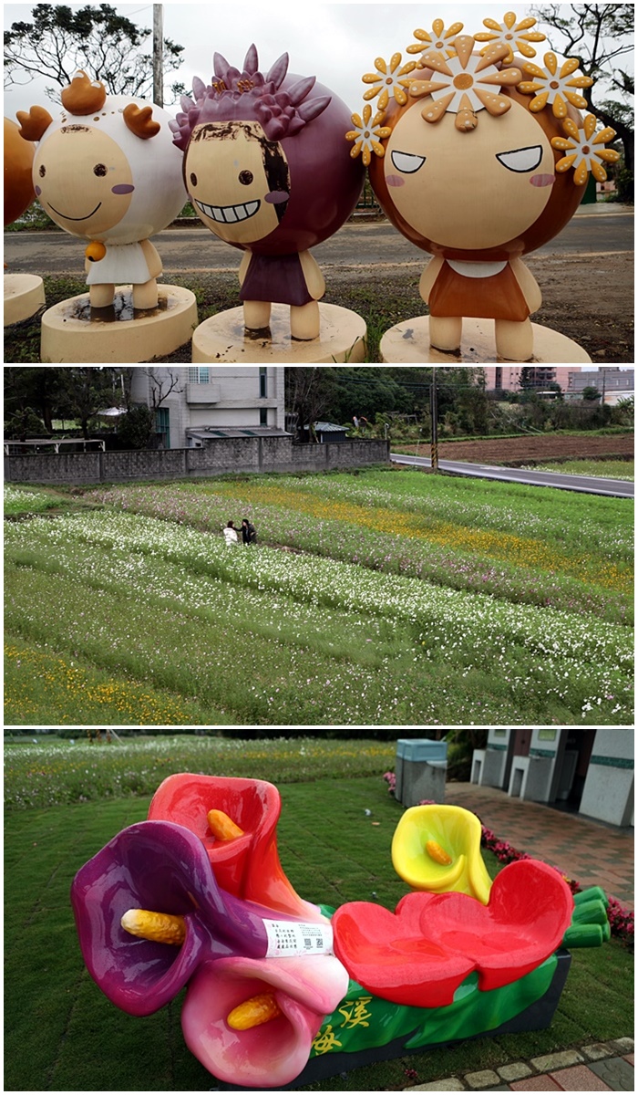 | 這邊也有很多公共藝術的布置物都超級可愛的,有一些都是歷年海芋節留下來的,保存的都非常好,人物也都很可愛,非常好拍的一個地方,趁著花彩節的尾端還是有一些遊客會來這邊拍拍照! |