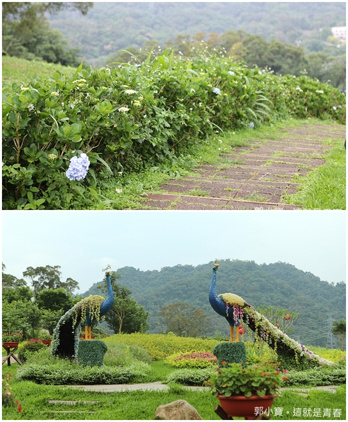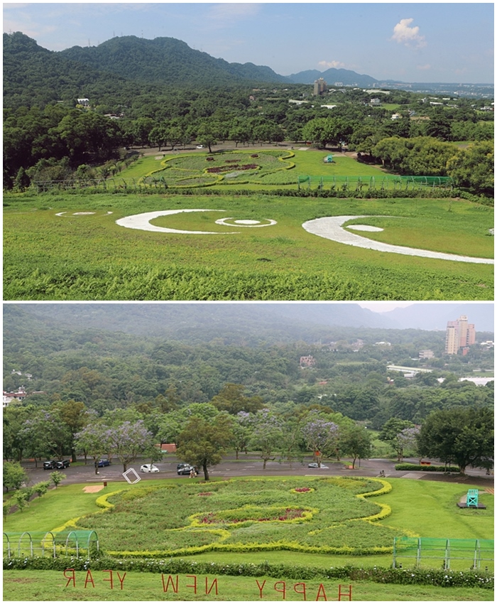 從高處看大溪花海農場有著不一樣的景色,從眺望台這邊看下去,下面的園藝造景瞬間變成一隻可愛的小熊,跟從下面看完全是不一樣的風景。