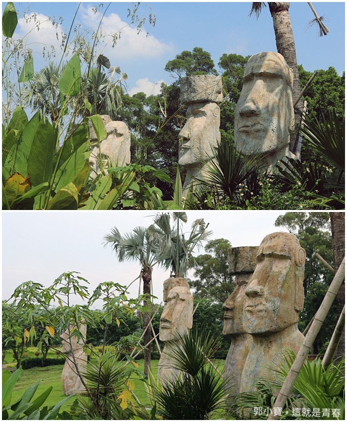 | 大溪花海農場規劃很多區域,摩艾石像區也是很受歡迎的區域,搭配著好天氣拍起來真的很漂亮,難怪有那麼多戲劇都會來這邊取景,摩艾像真的很受歡迎,好多人搶著在這邊拍照。 |