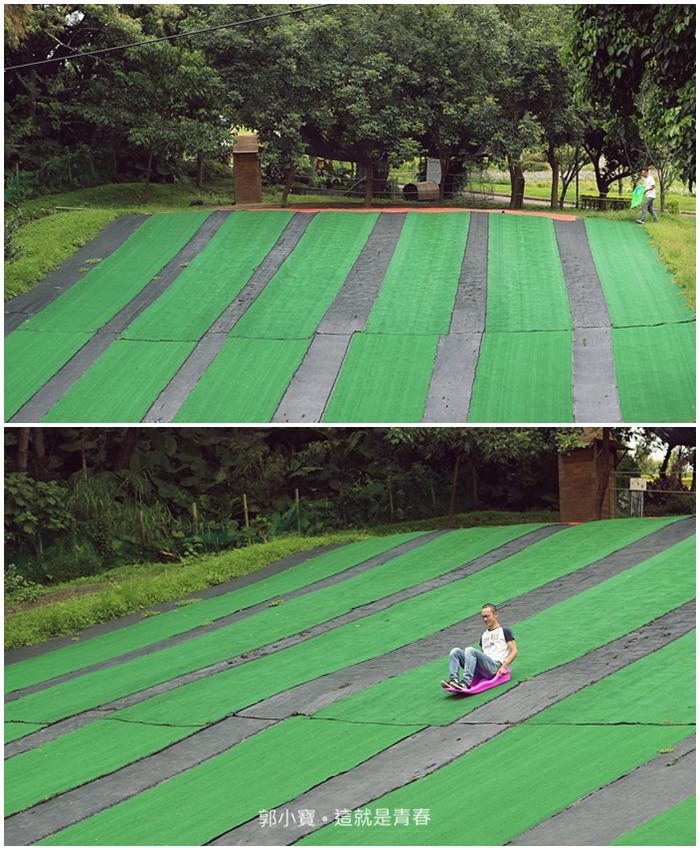 | 一路走下來再接近門口的地方還有一個滑草區,這也是很多大小朋友超愛的區域,同樣可以租借滑板遊玩。 |