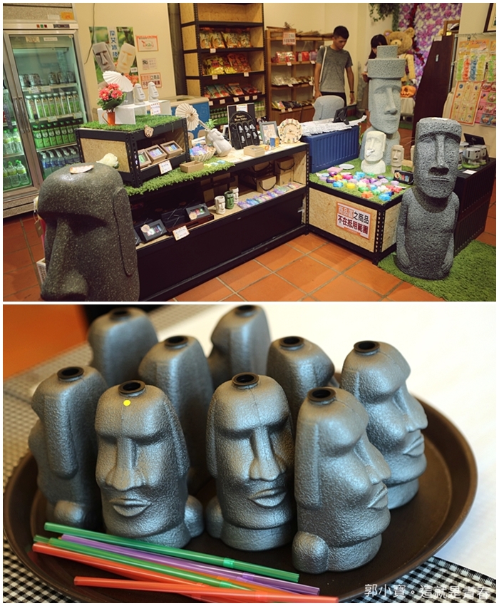 | 除了琳瑯滿目的商品可以選購一外,最吸睛的當然還是各種大大小小的摩艾商品,餐廳內提供的摩艾奶茶最受歡迎。 |