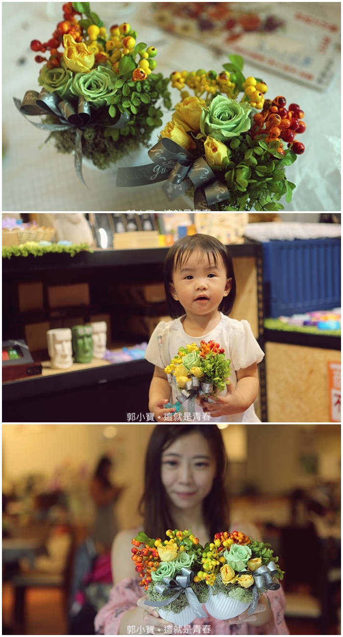 | 我覺得這體驗真的很好玩,且永生花也是這兩年非常流行的商品,花藝老師會協助大家擦出一盆非常美麗的永生花盆栽,自己動手布置花花草草,連我家Cola看到都想親自動手做了。 |