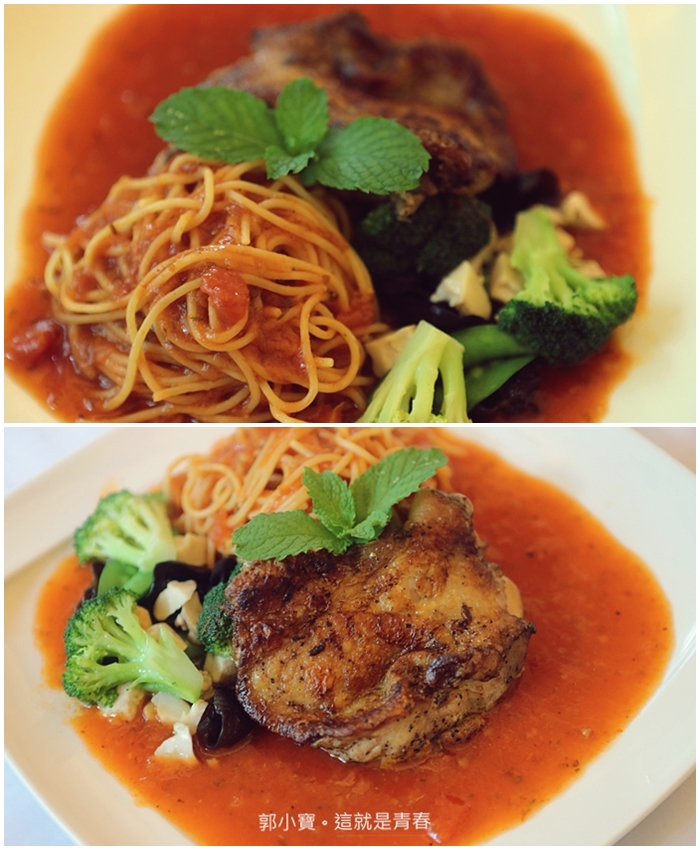 香料烤雞腿&蘋果紅醬義大利麵$380
