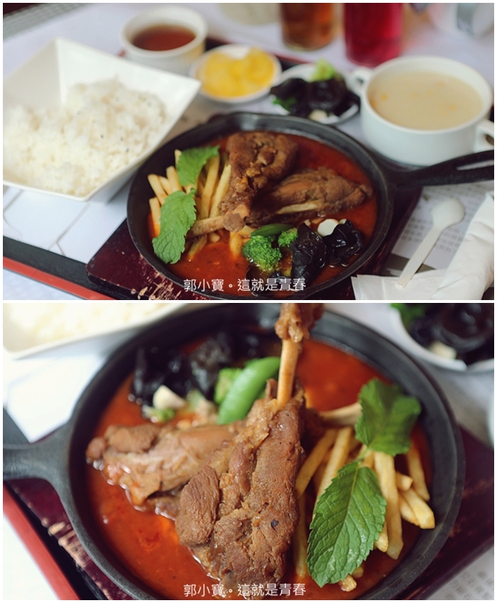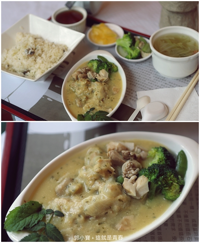 我個人很喜歡這一道菜,豬膝吃起來很入味,一口豬膝在把香草醬汁淋在白飯上吃真的很順口,熱呼呼的一口接著一口瞬間被大家搶食完畢。 |