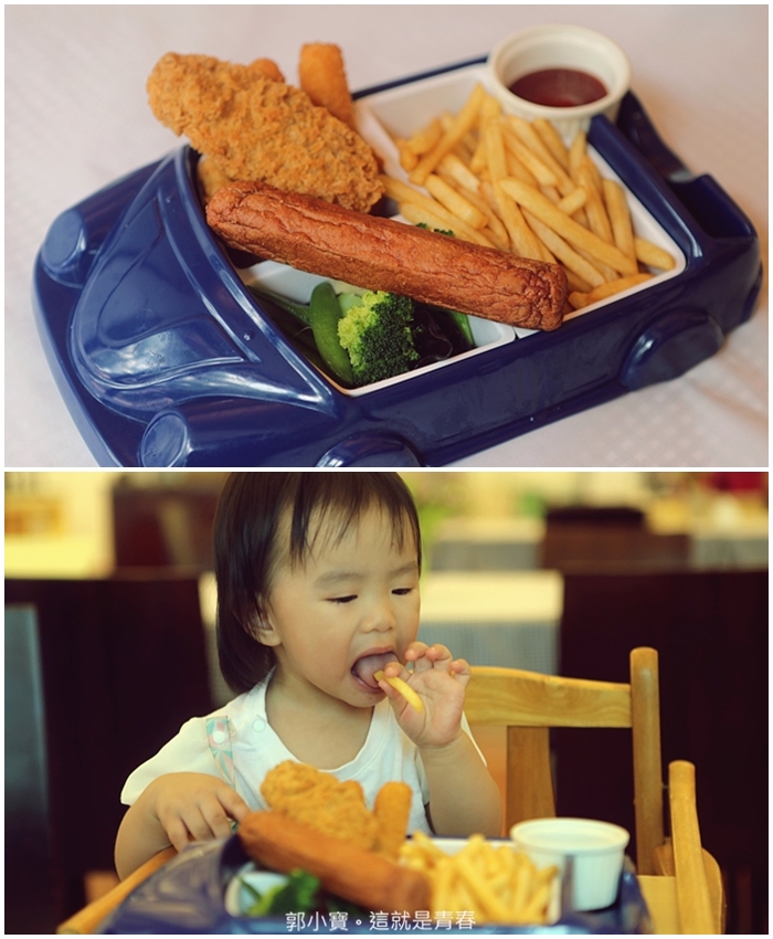 當然還有小小孩最愛的兒童套餐,而且還用小朋友最愛的汽車盤裝盛食物。 |