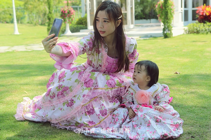 | 除了大人以外,也有小朋友的服務可以租借,英國風格的母女檔真的感覺好歐風,我們特別挑了差不多風格跟色系的福是讓我家太妃跟COLA一起拍照,拍起來我都超喜歡的,真的太好看了!!! |