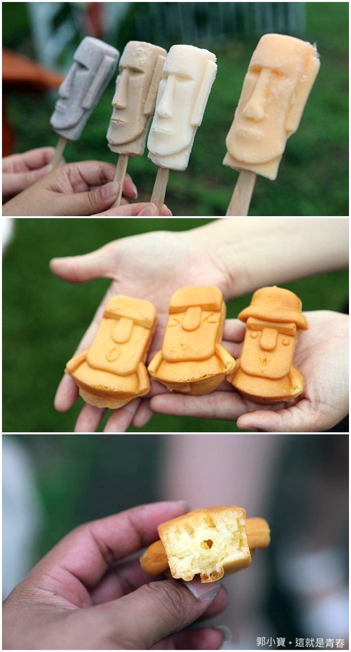| 超受歡迎的摩艾冰棒跟雞蛋糕,大溪花海農場很多周邊商品都是以摩艾為主,所以製做很多摩艾的周邊商品,就連冰棒跟雞蛋糕也免不了做成摩艾的造型,真的非常可愛,夏天就是要來一根摩艾冰棒阿XD |