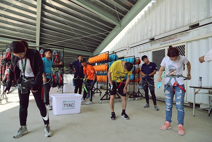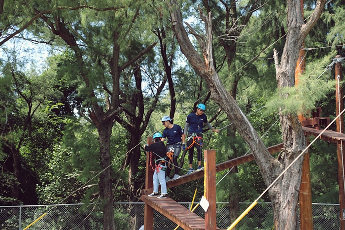 | 青年體驗學習園區是北台灣擁有最多高低空設施的探險活動體驗場,有多達52項國際認證戶外高低空探索體驗,所以要體驗這些挑戰自己的探索體驗需要先上過一小段課程填寫問卷及保險事宜就可以出發了。 |