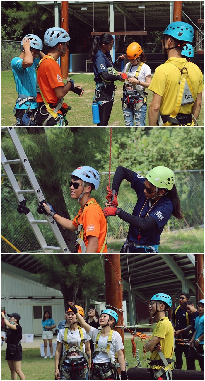 我們先挑戰的就是剛引進全新的自我確保設施,共有3層,每層設有8個關卡,一層設施可讓約20人團體操作,3層同時進行可容納約60人團隊。