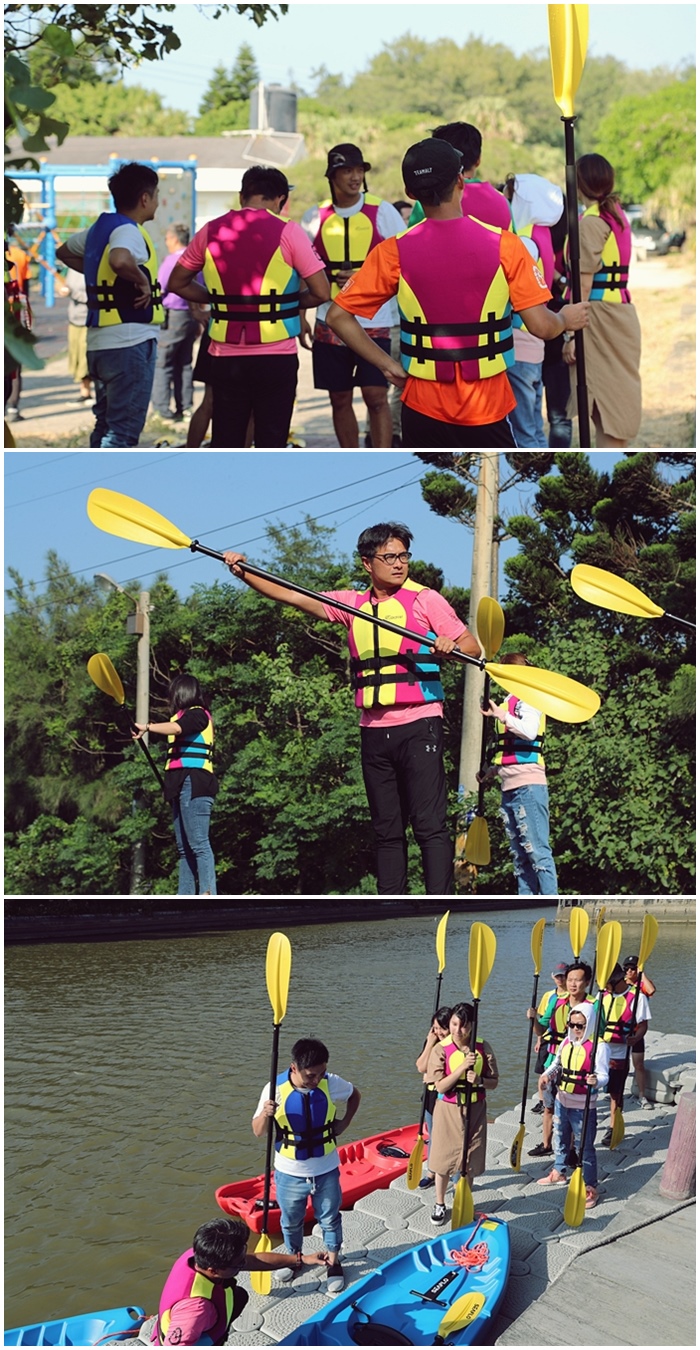 | 全員安全的登上獨木舟,有單人獨木舟跟雙人獨木舟,比起以前的湖中划船,獨木舟的刺激性跟機動性更高也更好控制,不用多久大家就都可以掌握到技巧。 |