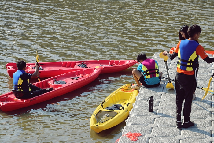 青年體驗營園區會協助預約登記海管處10月才正式開放桃園市民限定在後湖溪親水區享受免費恬靜的獨木舟推廣體驗。