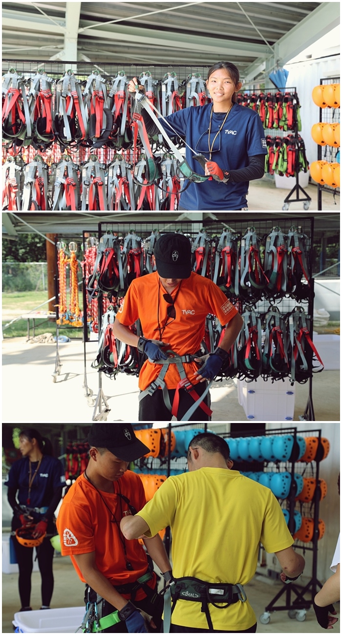 | 教練們真的非常細心,每一個設施要上場前,都會在重新確認學員身上的安全裝備,在三確定牢固讓每個學員可以玩得更安心更盡興。 |