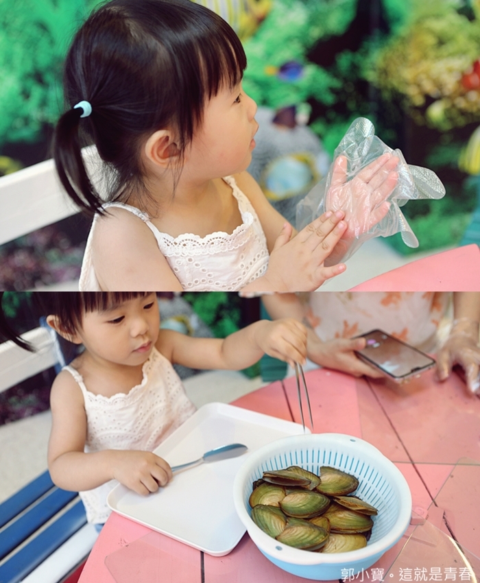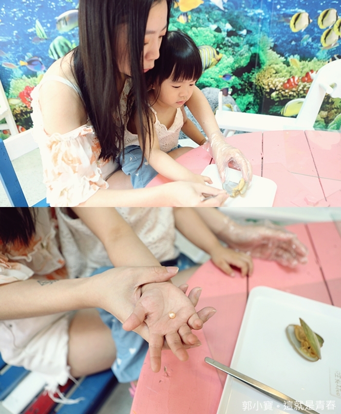 | Cola第一次親手把珍珠挖出來真的充滿好奇,對於很多小朋友來說,可以親手將珍珠從貝殼肉裡面挖出來都是很震撼的,然後就會有一堆疑問發問,為什麼貝殼裡面有珍珠之類的問題。 |