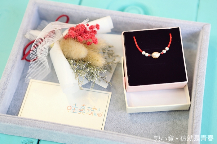 | 最後還是決定把這顆一家人一起體驗挖出來的珍珠做成Cola的手鍊,本來考慮要製作成項鍊、耳環等,但是最後還是決定做成寶貝女兒的手鍊來當作紀念。 |