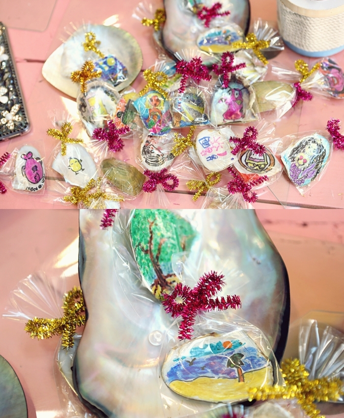 | 現場有很多之前來體驗的遊客留下的畫作,好多人都在貝殼上畫的好美,畫完的貝殼也可以帶回家當紀念。 |