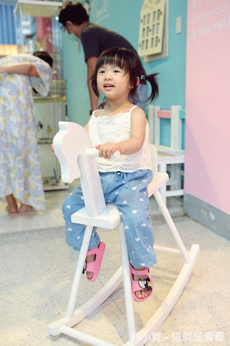 | Cola一進店內就非常開心,因為每個地方都她來說都感覺非常有新鮮感,就連一旁的小木馬都玩得很開心,重點是也可以滿足家長們拍小朋友的樂趣。 |