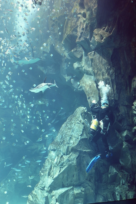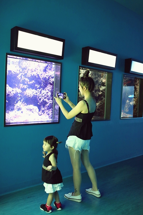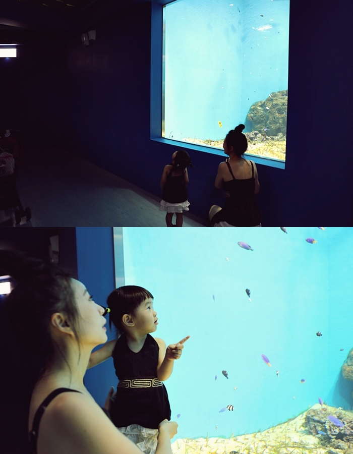 | 我們家Cola一整個看呆了,兩層樓的海生櫥窗彷彿置身在海底世界一班的美麗。 |