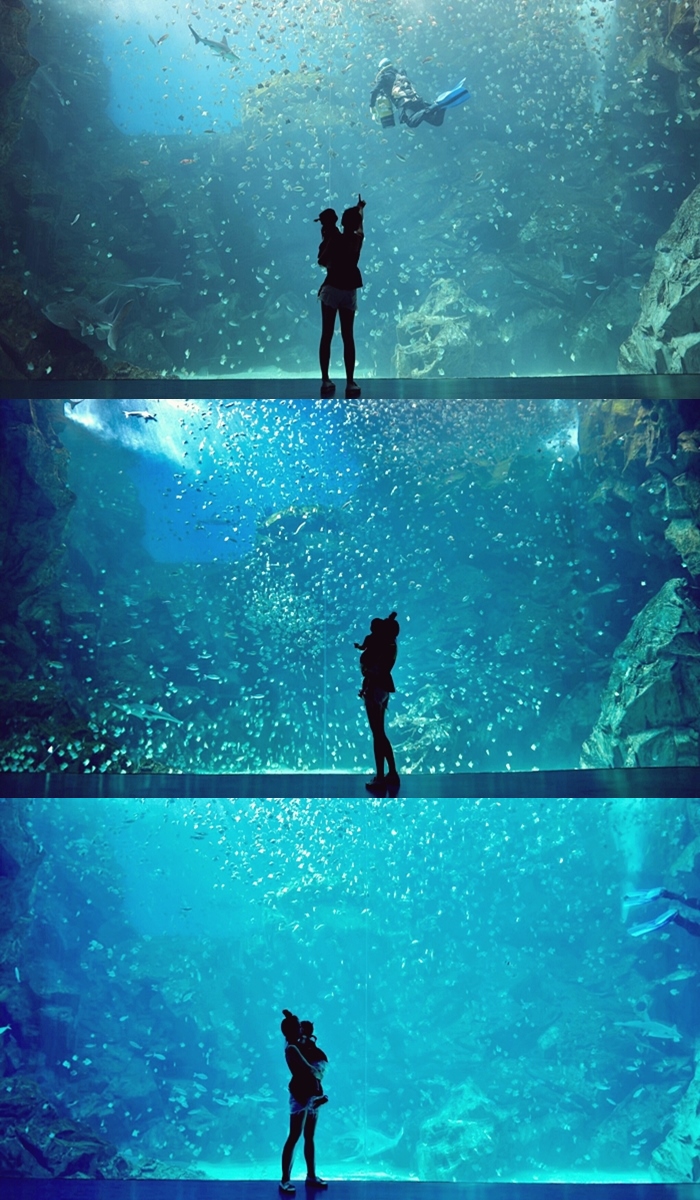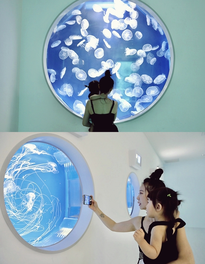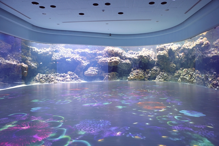 | 光是這超大的水生櫥窗就讓我們逗留超久的,好想就這樣靜靜坐在這裡看著這麼美麗的海生櫥窗,一整個就像是夢幻世界般美麗。 |