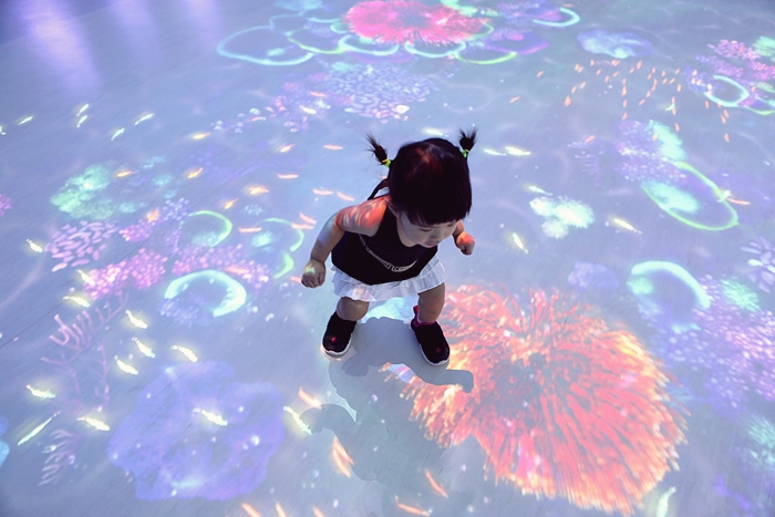 | 以珊瑚為主題的區域,搭配地上的動畫世界也很美,對於小朋友來說似乎地上的投幕動畫更加來的有興趣,Cola倒是玩得非常開心。 |