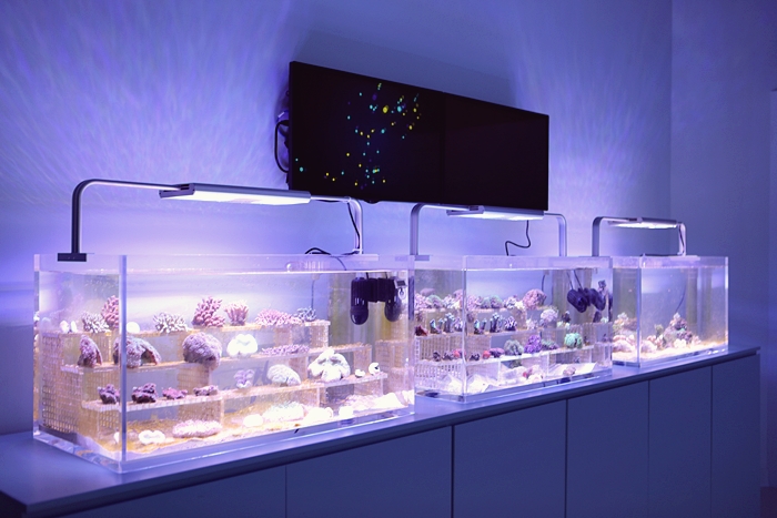 | 一旁的水族箱還有展示著各種珊瑚,搭配上方的銀幕方便小朋友認識珊瑚。 |