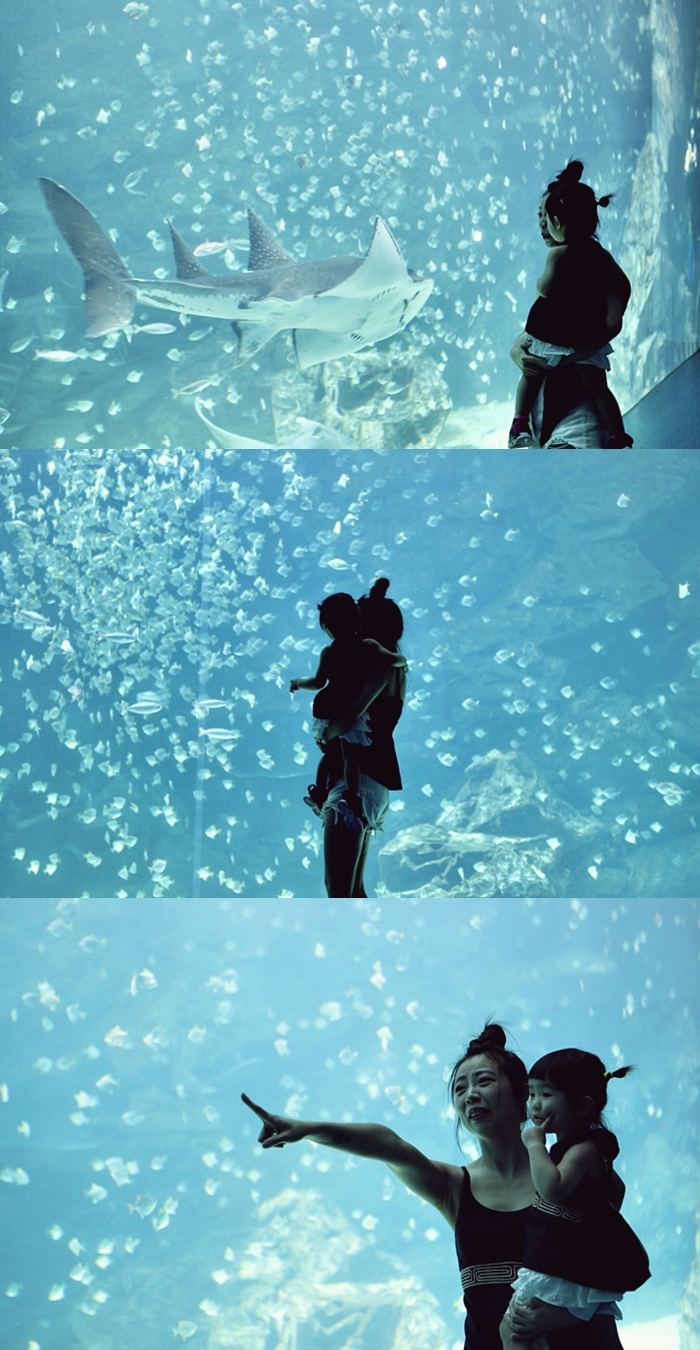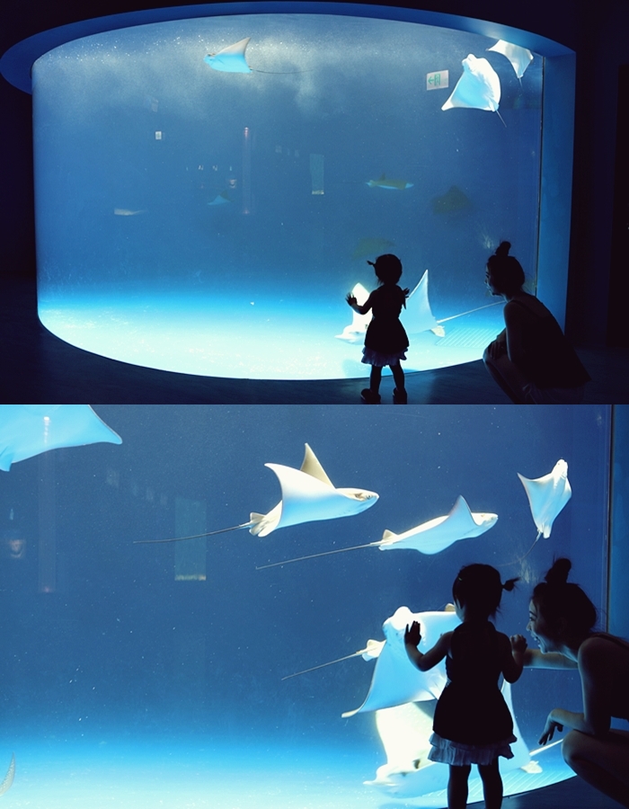 | 魔鬼魟也是Cola超喜歡的魚,一直指著魔鬼魟說飛機,飛來飛去的。 |