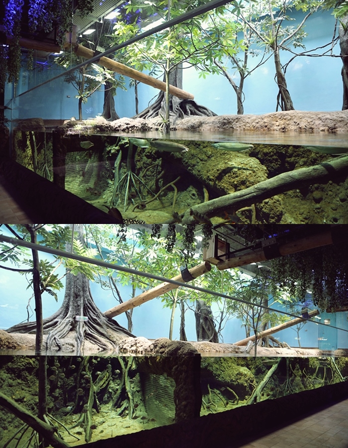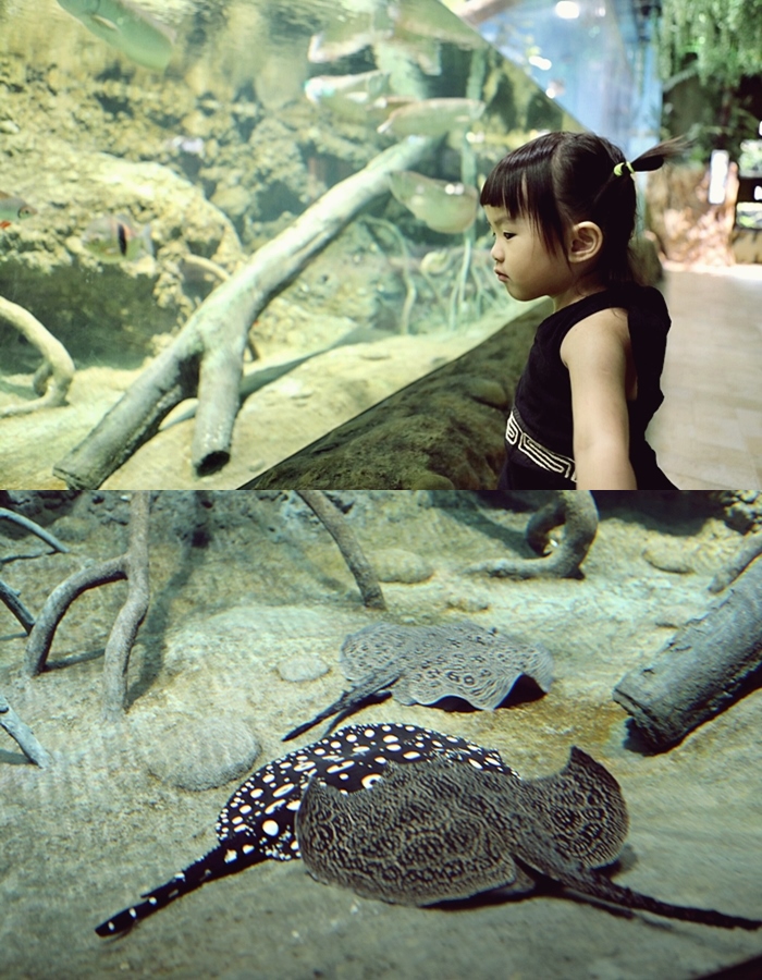 | 這邊的高度讓小朋友可以很輕鬆地觀察到雨林河川下的生物種類跟特性。 |