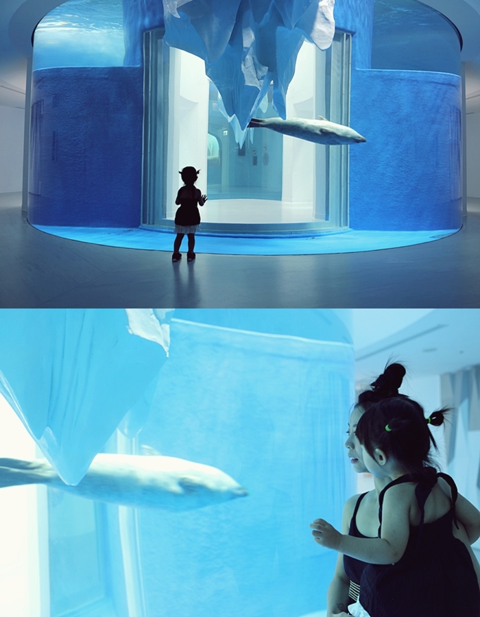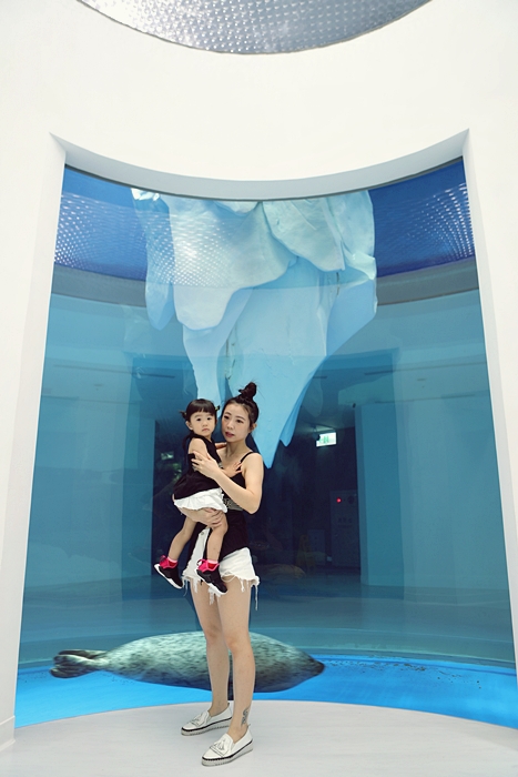 | 進入到這一區就會感受到特別冰涼,可能是寒帶主題的關係,圓形水生族窗內的就是很受歡迎的海豹,老實說有時候我也分不太清楚海豹、海獅、海狗、海象,總覺得長的都很像。 |