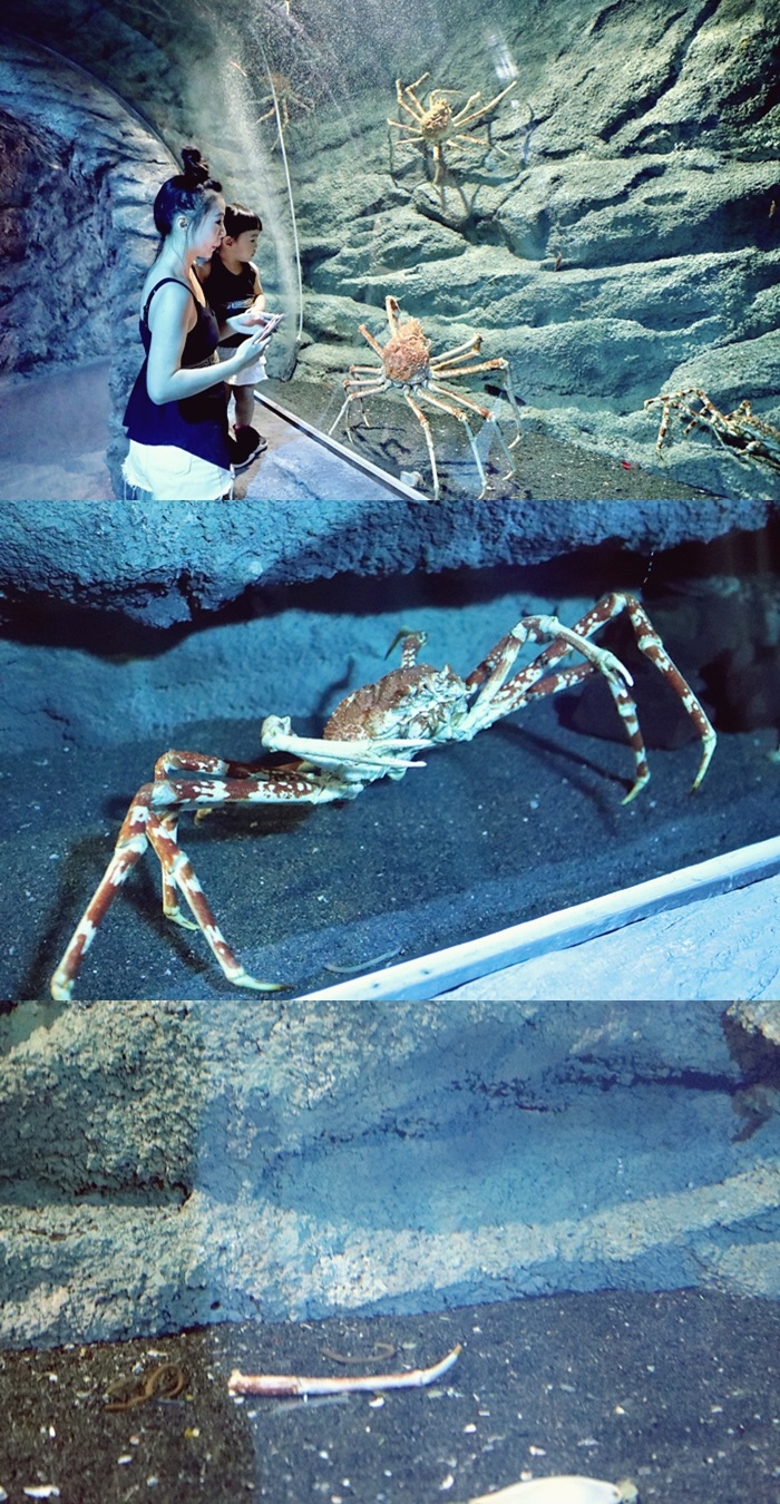 | 老實說深海區的海底動物每個櫥窗都很精彩,剩下的就留給大家親自來這邊瞧瞧,最吸引人的就是這超大一缸的帝王蟹?,看的我們一家三口肚子都餓了XD |