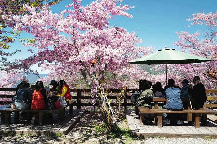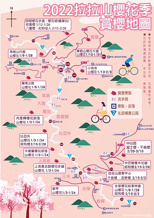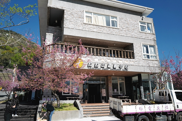 | 拉拉山遊客中心的櫻花盛開,這邊也有超多人潮紛紛停下來拍照打卡,這個季節非常舒服,雖然有太陽卻不會炎熱,非常舒服的天氣,是個賞櫻的好季節。 |