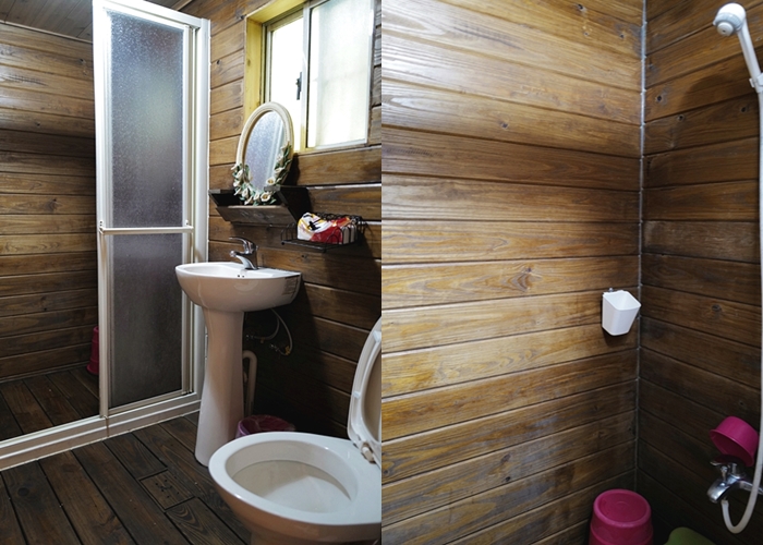 整間廁所也都是木頭打造,讓我不禁好奇淋浴間也是木頭難道不會爛掉嗎?