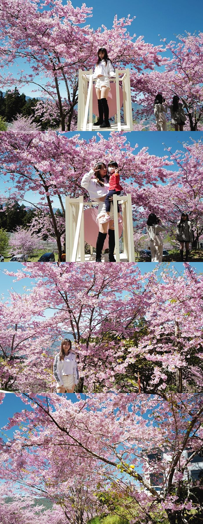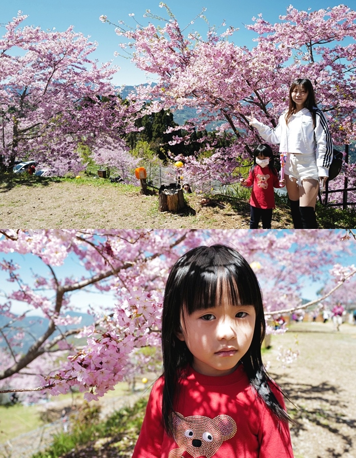 | 一家人在這邊不知道按了多少快門,每一個角落都是滿滿的櫻花海,實在是太美麗了,恩愛農場內在櫻花祭內也有小販區,提供很多小販餐點給遊客填肚子。 |