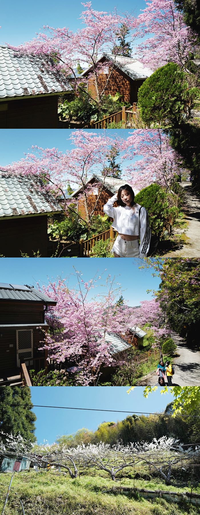 | 恩愛農場園區頗大,有幾條小路搭配恩愛農場的木造民宿一整個就是日本的氛圍,對於已經兩年沒出國的我們,確實有感受到了出國的情境,一枚的梅花(?)雪白雪白的也很漂亮! |