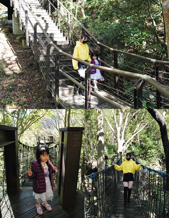 | 小小的吊橋母女倆走得非常輕鬆,反而Cola還覺得很好玩,太妃則是心驚膽跳,這吊橋其實沒有很高,但是搖晃程度確實滿驚險的! |