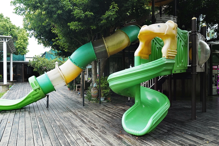 | 兼具速度與快感的樹屋溜滑梯也是小朋友的最愛,最主要還要大樹遮蔭,所以小朋友在這邊玩耍也不會被狠毒的太陽長時間曝曬,但畢竟是屬於比較大自然的環境,所以防蚊噴霧家長還是要勤勞點補。 |