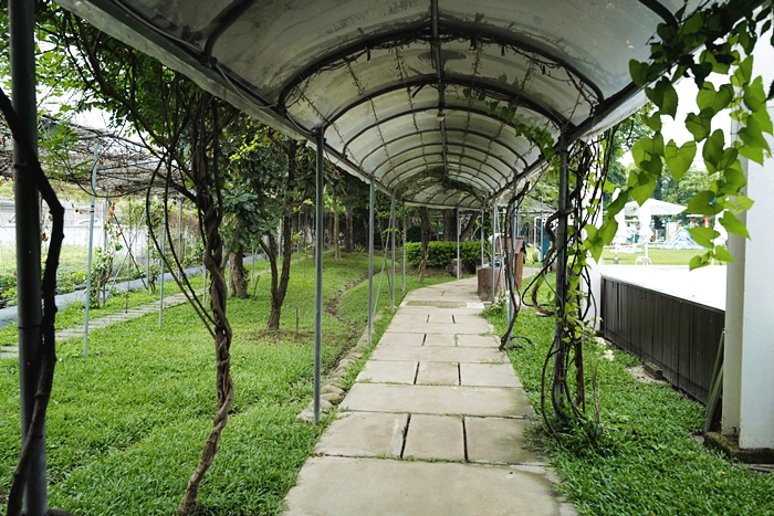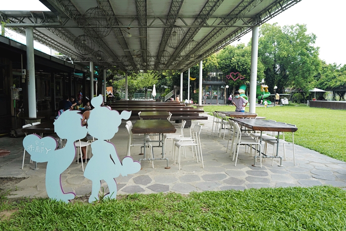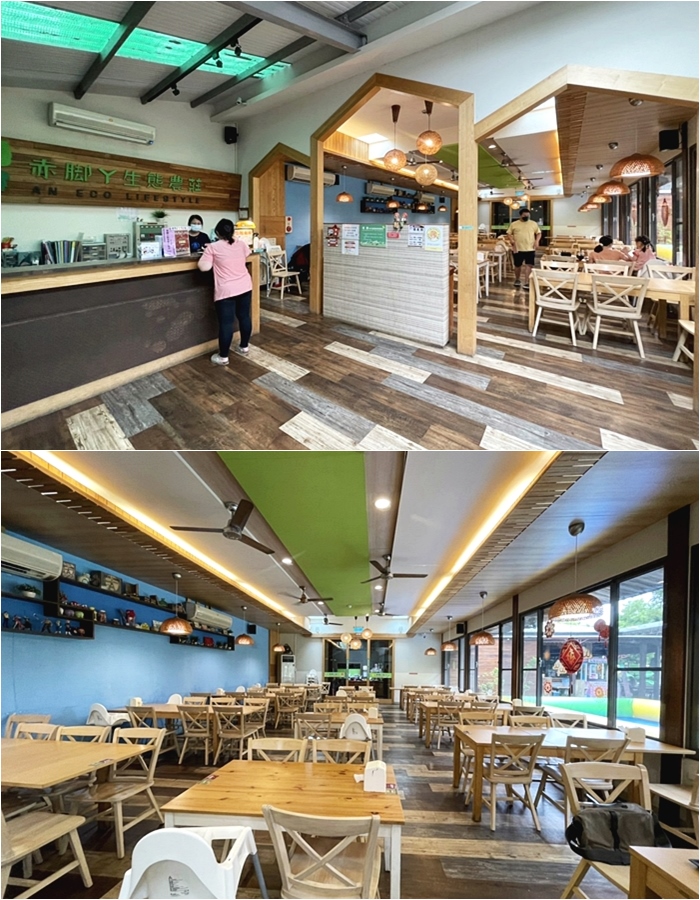 | 門票都可以折抵50圓,所以也不要浪費,赤腳ㄚ生態農莊有餐廳跟點心的販售區,就在門口一進來的左手邊,有戶外跟室內的空間。 |