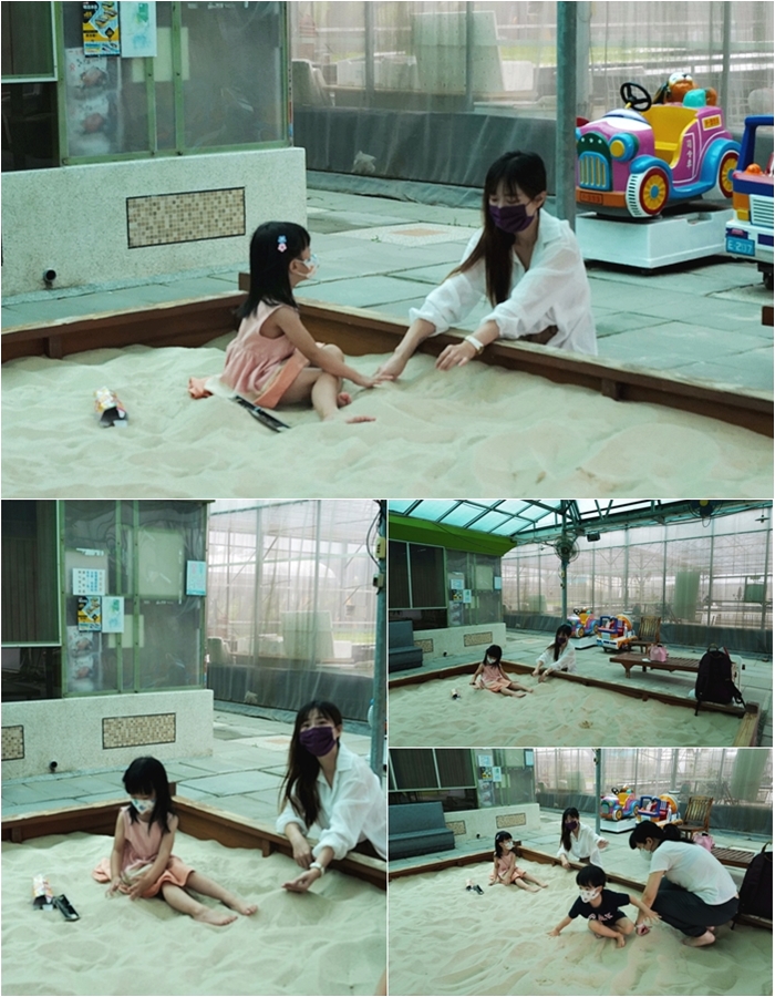| 沙坑也是小朋友放電的好地方,家長也可以在一旁放空,加上沙坑幾乎沒有特別危險的因素,不像戲水池都要一直盯著。 |