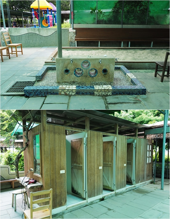 | 不管是玩沙坑還是戲水,一旁都有可以讓家長幫小朋友洗滌的設備,這一點也超級貼心的,連吹風機都有準備好,個人覺得貞的設想的很周到,超棒! |