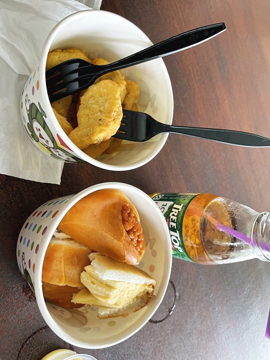| 直接在外面買個點心跟飲料當點心,對於小朋友放電放到一半填個肚子是個很好的選擇。 |