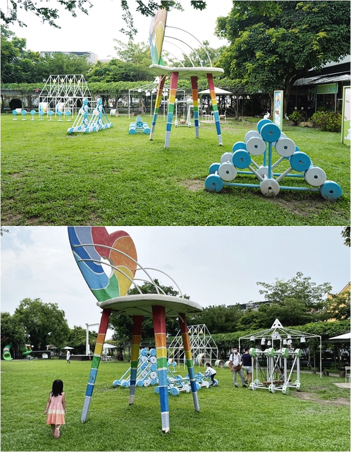 | 園區後面還有小朋友超愛的大沙坑跟戲水區,這邊也有相當多的藝術裝置,不管大人小朋友都可以拍得盡興。 |