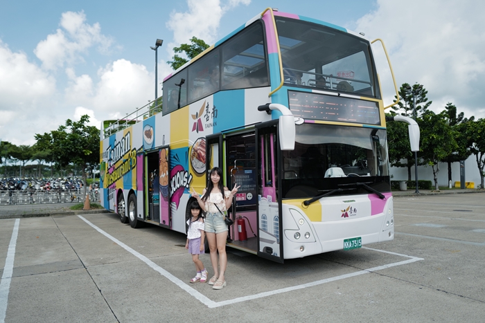 當天8:30就準時到達台南高鐵站集合,停車場上就可以看到超繽紛的雙層巴士,這巴士就是我們今天要搭乘的車子,一整個超吸睛的,雙層巴⼠美食主題遊程每⽉皆有不同的主題,以⾺拉松式的形式展開,帶領遊客透過不同的視⾓了解台南在地美食。