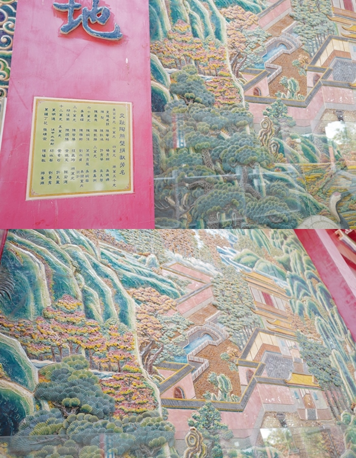 | 一整面的交趾陶更讓我嘆為觀止,交趾陶是台灣非常重要的文物及工藝,現在能看到這麼大面積的完整交趾陶真的相當稀少了。 |