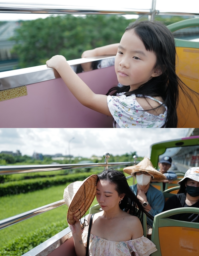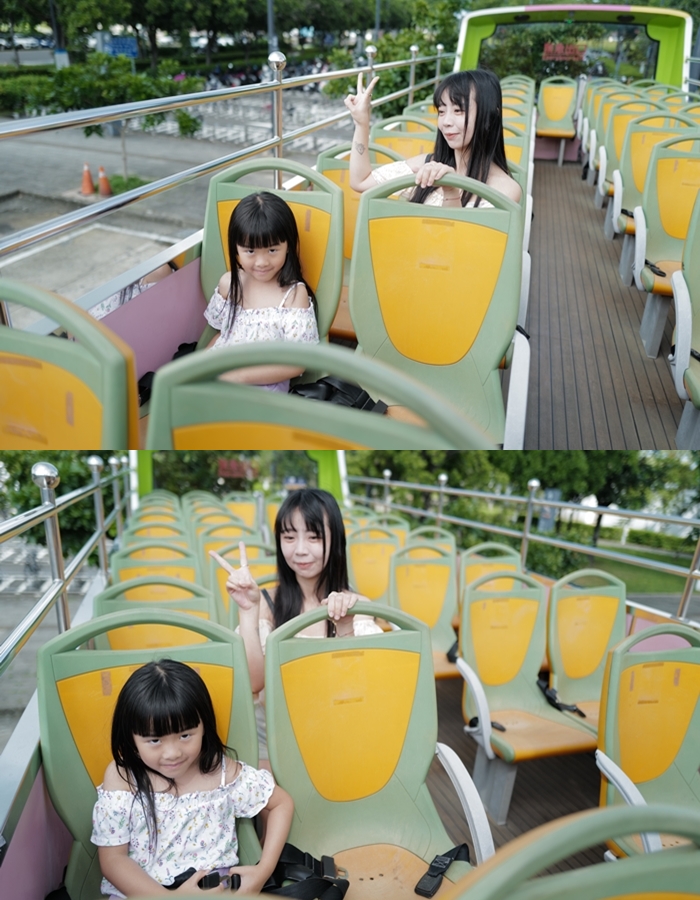 | 車頂上的露天座椅非常搶手,雖然是炎炎夏日,但是當巴士行駛後迎面吹來的微風輕撫在臉上,真的是舒服極了。 |